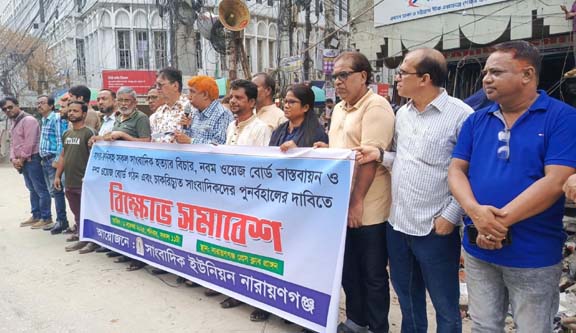সাংবাদিক ইউনিয়ন নারায়ণগঞ্জের উদ্যোগে মানববন্ধন ও বিক্ষোভ সমাবেশ অনুষ্ঠিত